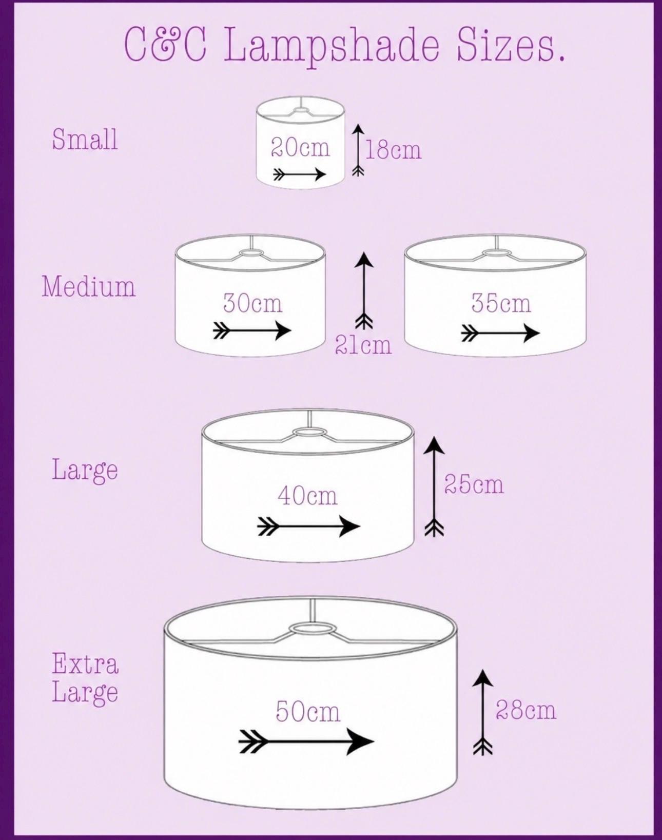 (Pease be aware that the extra Large 50cm lampshades will have an additional pattern matched seam due to the length of fabric required)